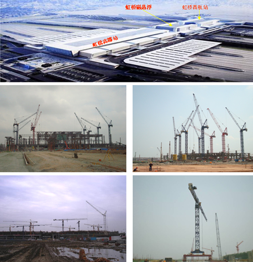◎上海虹橋磁懸浮站采用中昇建機(jī)二臺(tái)ZSL750行走式塔機(jī)(最大吊重50t)和二臺(tái)ZSC6090行走式塔機(jī)(最大吊重35t)