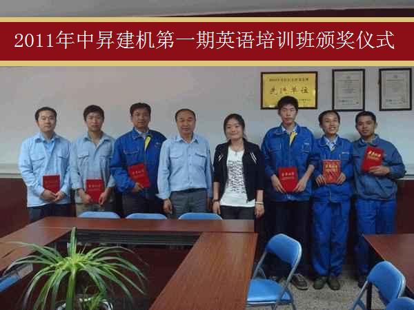 青青艷陽五月天 萬類花朵竟?fàn)幤G,在此春暖花開的大好之際迎來了中昇建機(jī)第一期英語培訓(xùn)班結(jié)業(yè)頒獎(jiǎng)儀式的開幕?! ”敬晤C獎(jiǎng)儀式的參會(huì)人員主要有管理部主任王德華先生、中昇英語教育訓(xùn)練負(fù)責(zé)人陸偉老師,以及各位獲獎(jiǎng)人員。