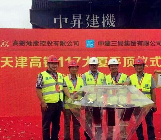 2015年9月8日上午,隨著最后一車12方混凝土泵送出管,2015年9月8日上午,隨著最后一車12方混凝土泵送出管,由中昇建機參建的天津117大廈主塔樓核心筒結(jié)構(gòu)高度達到596.5米,成為世界結(jié)構(gòu)第二高樓,中國結(jié)構(gòu)第一高樓(世界結(jié)構(gòu)第一高樓為哈利法塔)。117大廈建筑體量約為84.7萬平方米。