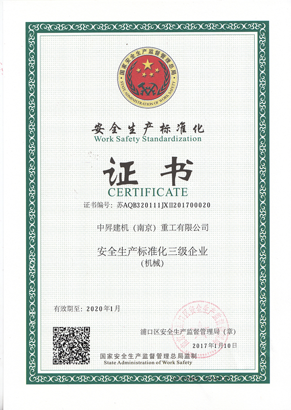 2017年1月11日,在經(jīng)過一系列安全生產(chǎn)標準化評定程序之后,我公司順利取得由浦口區(qū)安全監(jiān)管管理局頒發(fā)的安全生產(chǎn)標準化證書和牌匾。