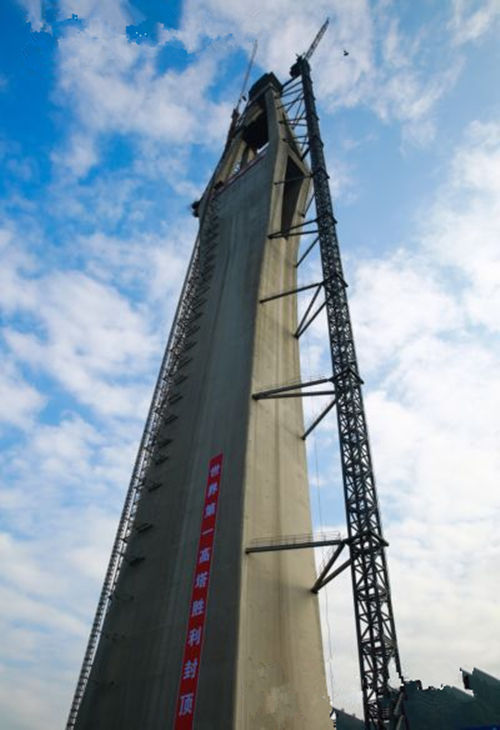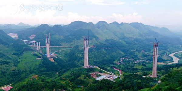 11月13日下午,2016年4月29日開工建設的平塘特大橋三座主塔已成功封頂,工程編號為16號的主塔塔高332米,為目前高混凝土同類型橋梁世界第一,較目前國內(nèi)最高塔蘇通大橋主塔(300.4m)高31.6米。