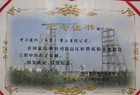 我公司塔吊ZSC80140因在特高壓桿塔試驗基地建設(shè)工程中出色表現(xiàn)獲得中國電力科學研究院高度評價。 2010-03-30 |