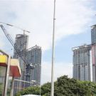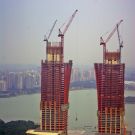 動臂式塔機(jī)尾部回轉(zhuǎn)半徑小,在拆建改建工程中,可有效避免塔機(jī)起重臂與周圍建筑物相撞情況的發(fā)生,適用于場地狹窄的工地。同時具有超大起重力矩,超高起升高度,較高起升速度,可在高層建筑的施工中充分發(fā)揮優(yōu)勢。