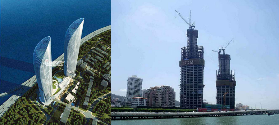 施工高度307米,采用中昇建機(jī)兩臺ZSL1250(最大吊重64t),一臺ZSL750(最大吊重50t)