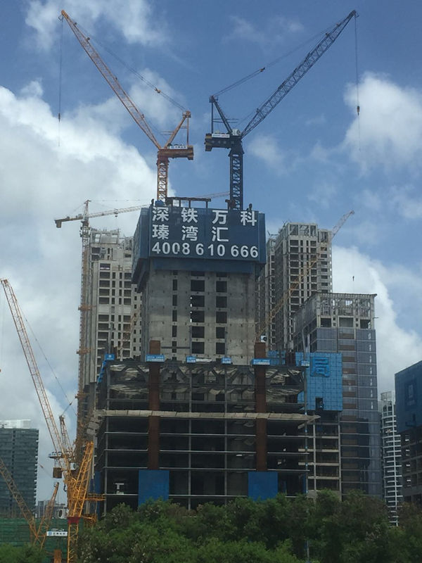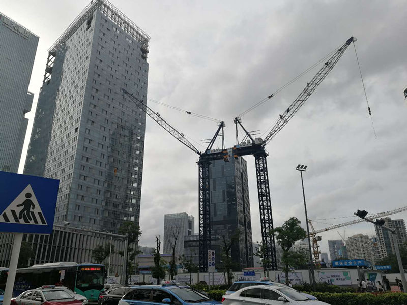 建筑高度330m,采用中昇建機(jī)ZSL1000兩臺,最大吊重64t