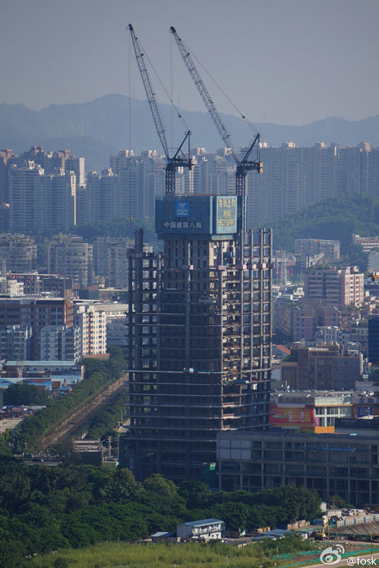 施工高度317.6米,采用中昇建機(jī)兩臺ZSL750(最大吊重50t)