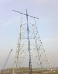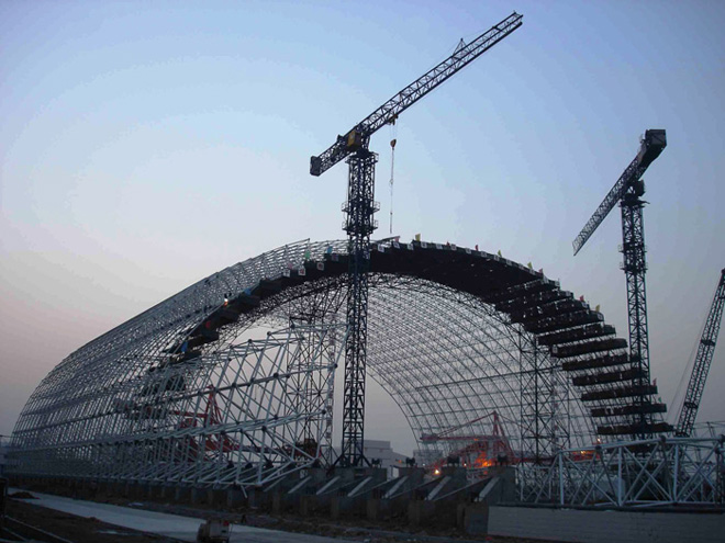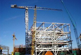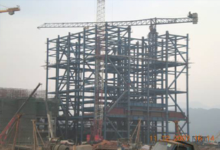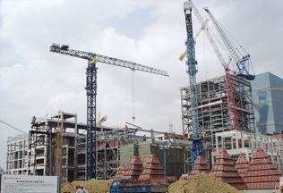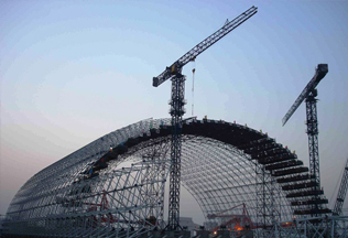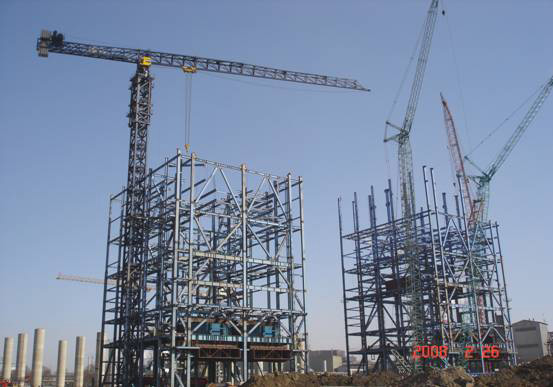 采用中昇建機(jī)ZSLB-I雙平臂自旋自升座地抱桿,高度210m最大吊重(兩邊)22m處吊10t