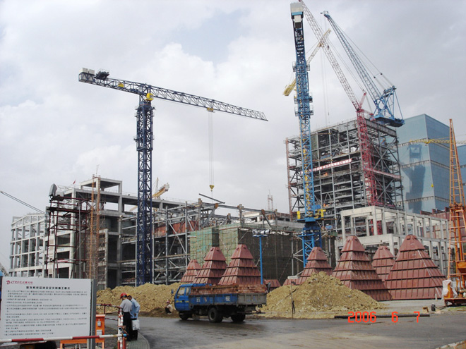 采用中昇建機(jī)ZSC2000A(ZSC70240)水平塔式起重機(jī),高度115m最大吊重20.2m處吊100t