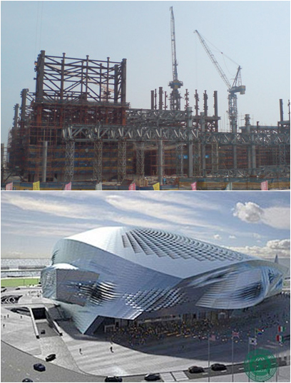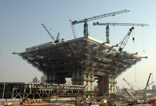 建筑面積84萬㎡,采用中昇建機ZSL1100(45T)五臺、三ZSL1150(45T)三臺。