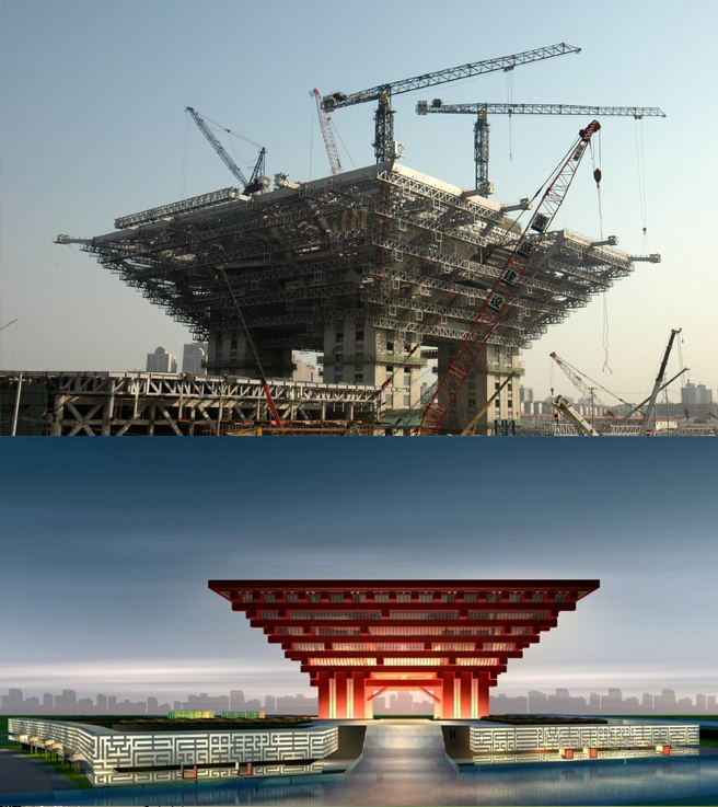 中國館建筑面積2萬平方米,采用中昇建機ZSL50170(50T)一臺、ZSC60200(60T)二臺。地區(qū)館建筑面積3萬平方米,采用中昇建機ZSL1000(50T)、ZSC30240(60T)、ZSL22300(50T)各一臺。