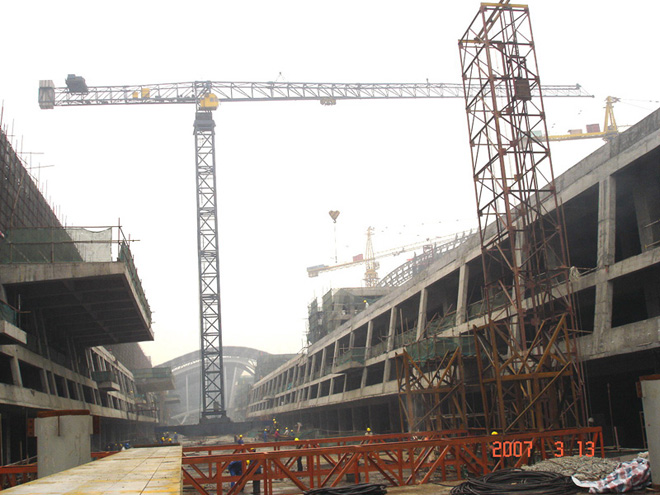 建筑面積23萬㎡,采用中昇建機行走式塔機ZSC6090(30T)一臺,ZSL750(50T)二臺,ZSC6090(35T)二臺,ZSL1100(40T)四臺,ZSL1200(60T)兩臺。