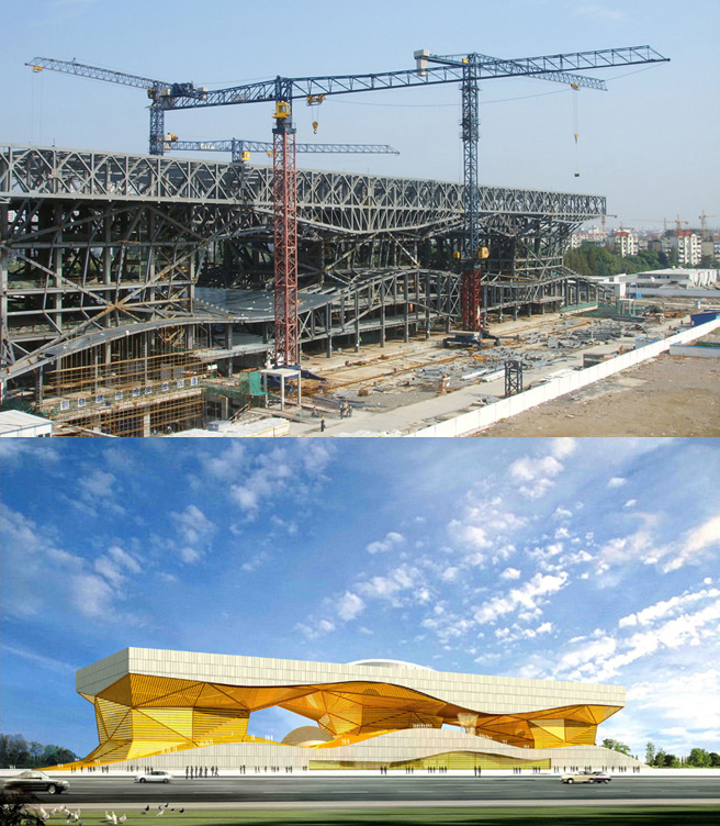 建筑面積23萬㎡,采用中昇建機ZSL750(50T)兩臺