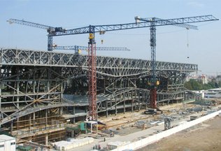 施工高度319.5米,采用中昇建機一臺ZSL1200(最大吊重60t)和三臺ZSL650(最大吊重32t)