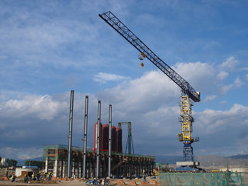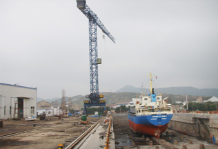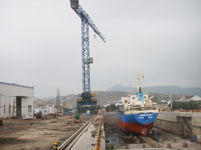 采購兩臺中昇建機門式行走塔式起重機ZSC28300、ZSC26300,立于船塢旁用于船舶的生產(chǎn)和維修。