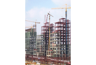 施工高度264.8米,采用中昇建機內(nèi)爬動臂式塔機ZSL1000(64t)兩臺